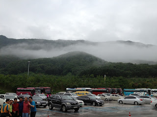 Next on the itinerary was Mt. Seorak. And of course a torrential downpour started as we pulled up to the cable car station. However, this did not dampen (haha) our spirits! We took the cable car up to the top and proceeded to hike the trail to the peak. It really did have some great views but unfortunately some were obscured by the clouds and fog.